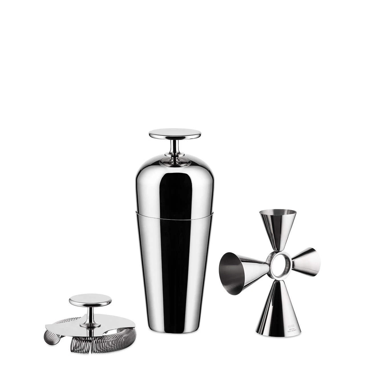 Set bestehend aus: “Parisienne” Shaker, Doppel Barsieb, “Quadri Combo Jigger” aus Edelstahl 18/10