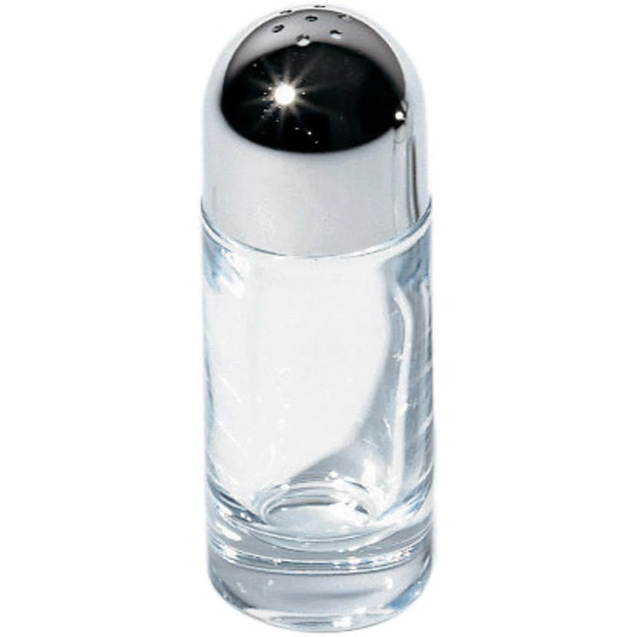 Pfefferstreuer aus Edelstahl glänzend poliert und Kristall.