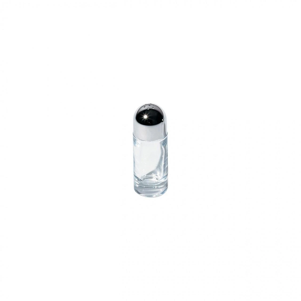 Salzstreuer aus Edelstahl glänzend poliert und Kristall.