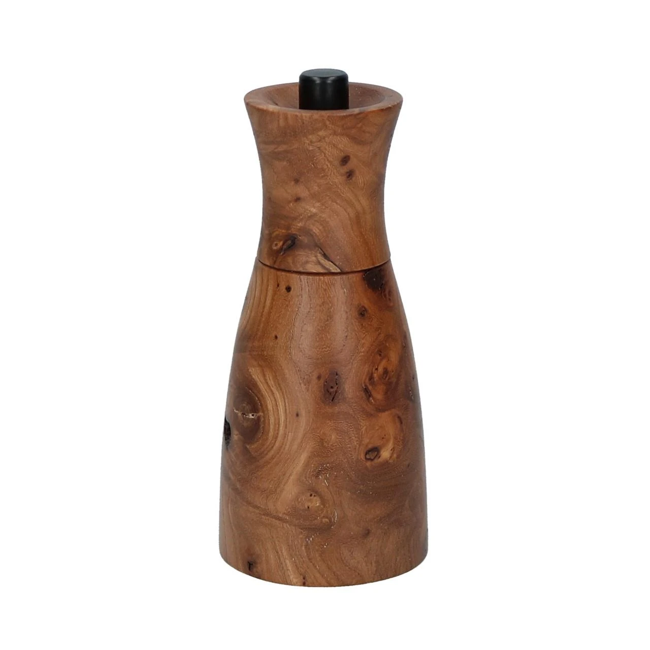 Die Pfeffer-, Salz- & Gewürzmühlen Piccolo von Alexander Ortlieb sind echte Handschmeichler, wunderschön sind ihre Maserungen. Sie sind der Blickfang auf jedem Esstisch. Wer mehrere Sorten Pfeffer, Salz oder andere Gewürze verwendet, wählt unterschiedliche Holzarten! Von Hand aus einem Stück gearbeitet und glatt geschliffen aus Hölzern mit besonderen Maserbildern wie Rüster, Eiche oder Myrte, Ahorn oder Nussbaum; lackiert (alkohol-, säure-, fettgeschützt), ca. 14,5 cm hoch, ausgerüstet mit dem hochwertigen ZASSENHAUS Ceraplus-Keramikmahlwerk.