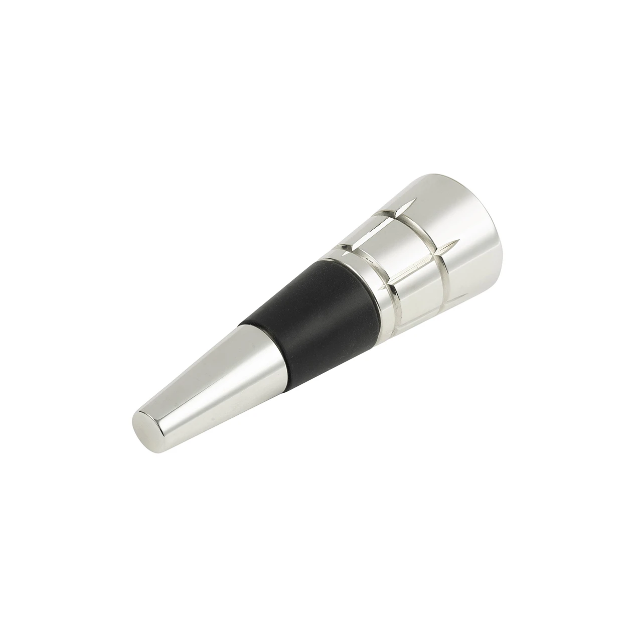 Der versilberte Flaschenkorken ist 8,4 cm hoch und hat einen Durchmesser von 2,6 cm. Er gehört zu der Serie Graphik von Christofle, in der einzigartige Kristallglas- und Barwaren fokussiert werden. Das raffinierte Design mit den einprägsamen, geometrischen Schliffen ist modern und klassisch zugleich. Eine Ummantelung aus schwarzem Silikon auf dem Mittelstück des Flaschenverschlusses dichtet die Flasche präzise ab. Mit diesem exklusiven Korken wird jeder Getränkeflasche der krönende Abschluss aufgesetzt – ob Wein, Champagner oder Saftschorlen. Für weitere Highlights auf der Bartheke findet man in der Serie auch Korkenzieher, Weinringe oder Flaschenuntersetzer.