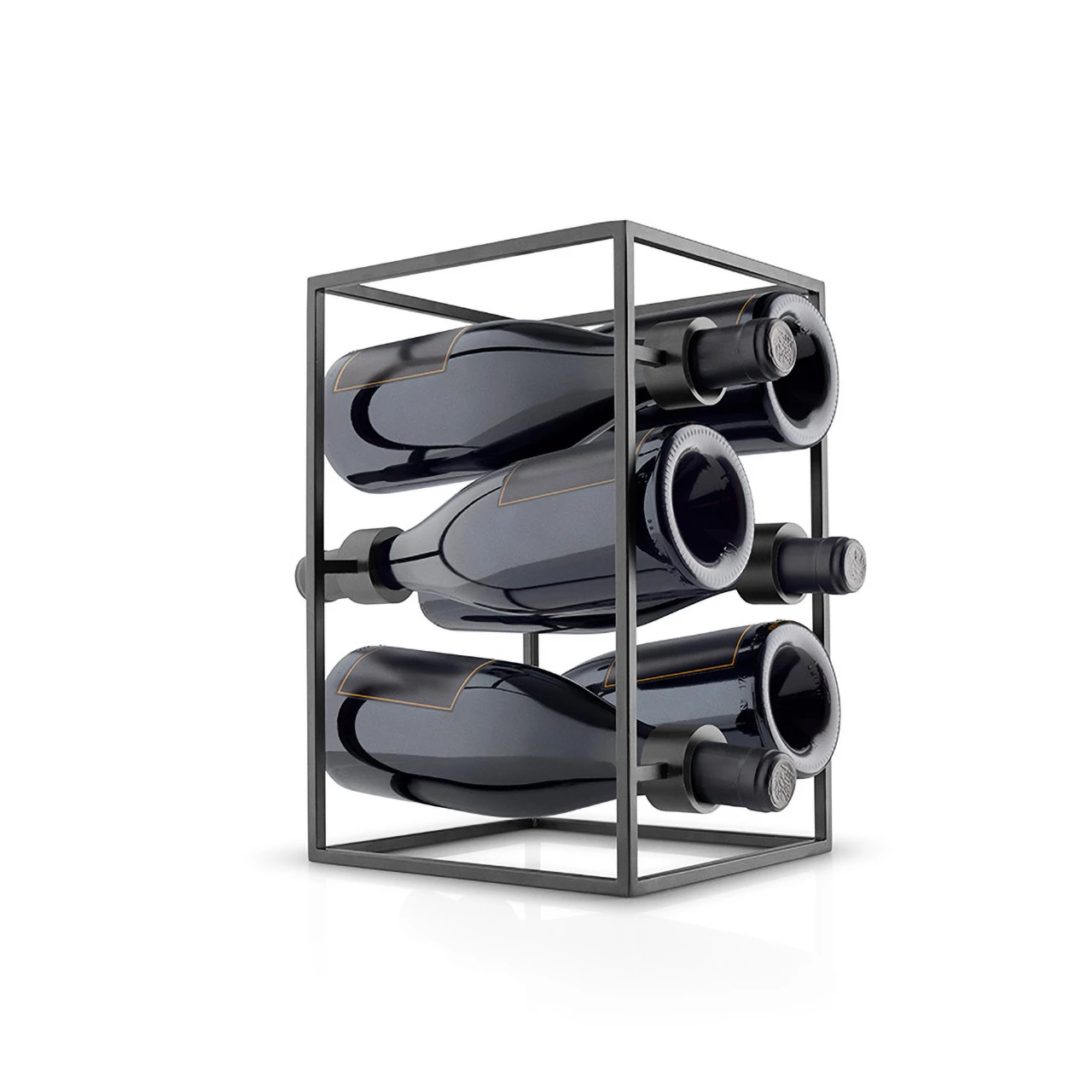 Guter Wein verdient eine ansprechende Aufbewahrung. Die Weinregale von Eva Solo sind ideal, um erlesene Weine auch außerhalb des Glases angemessen zur Geltung zu bringen. Die schlichte, skandinavische Form bildet einen schönen Kontrast zur eher weichen Silhouette der Weinflasche, und das durchdachte Design lässt die Etiketten zum Blickfang werden. Der skulpturale Weinwürfel, in dem die Flaschen sicher unterbracht sind, ist robust verarbeitet, wirkt gleichzeitig aber luftig und schlicht. Der Weinwürfel ist perfekt für die Präsentation und Aufbewahrung erlesener Weine und ist für die meisten Flaschentypen geeignet.