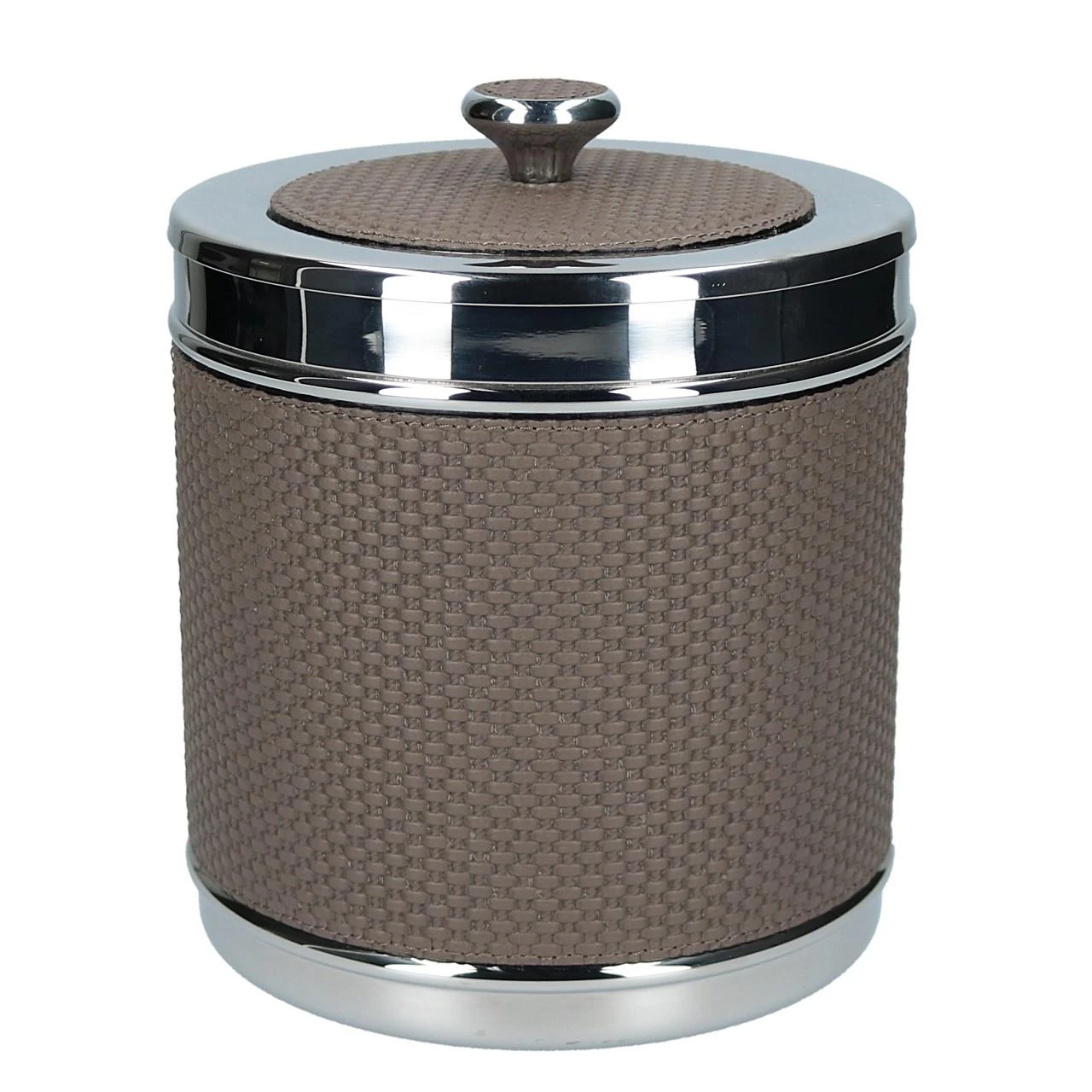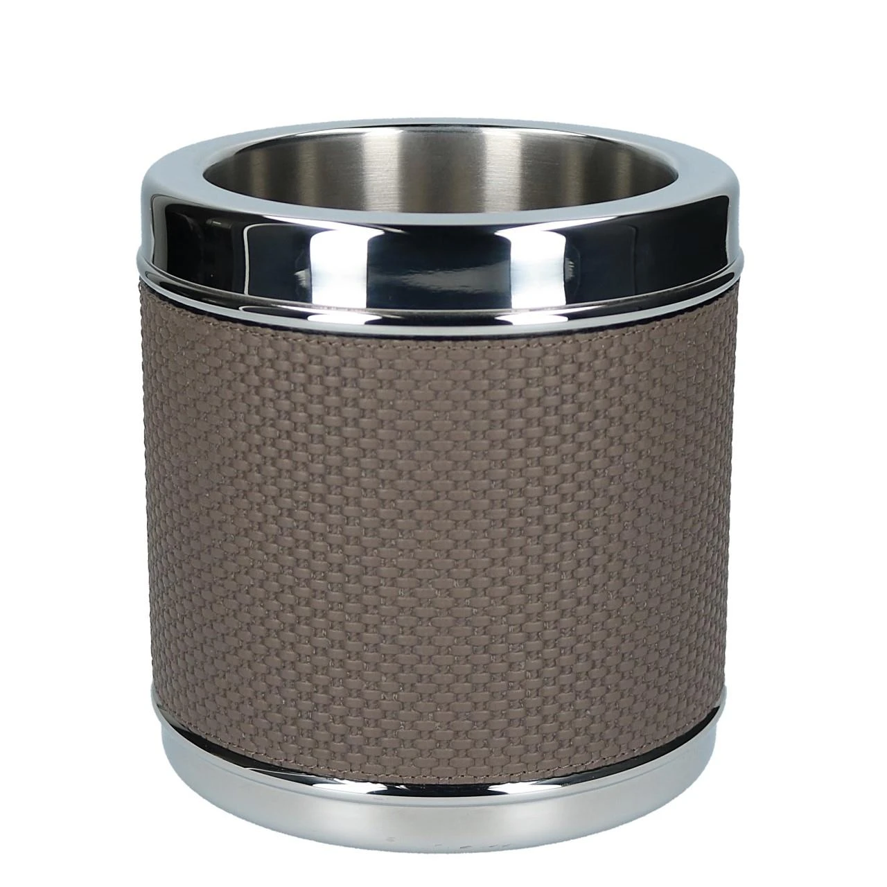 Mit der Kollektion Ocean bringt das Haus Giobagnara italienische Eleganz in jedes Wohnambiente – auf dem Boden wie auch auf Wasser. Die Produkte der Kollektion zeigen sich nicht nur in nuancierter Farbauswahl und hochwertigen Materialien. Sie sind ideale, zeitlose Begleiter für Ausflüge auf dem Boot und sorgen jederzeit für perfekt temperierte Getränke. Der verchromte Eiseimer hat einen Durchmesser von 16 cm und eine Höhe von 19 cm. Der Behälter samt Deckel wird von feinem, dunkelbraun-grauem Bellagio-Kalbsleder umzogen, das von einer gleichfarbig abgesteppten Naht vollendet wird.