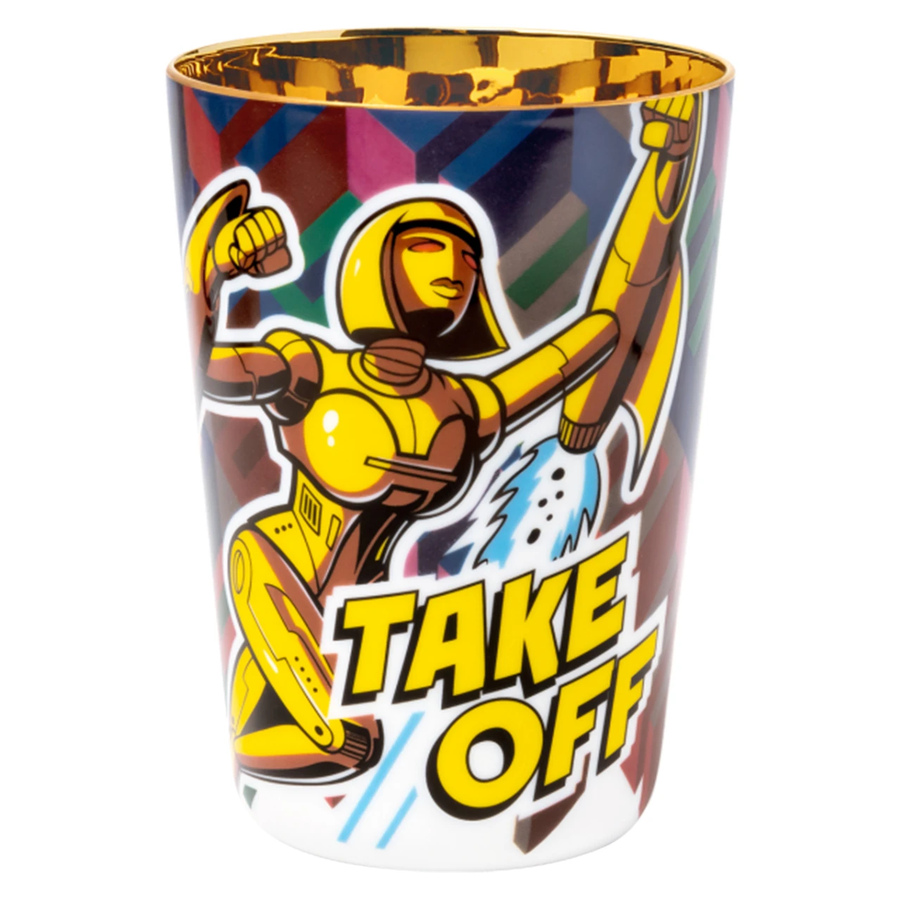 Der Wasserbecher “A-Angel” ist Teil der Desire – The Sparkling 4 & Friends Serie von Sieger by Fürstenberg, die eine Bechergrößen-Erweiterung der Sip of Gold – Sparkling 4 Kollektion ist. Der farbenfrohe Comic Becher ist von Hand gefertigt und wie jeder Becher von Sieger ein Unikat. Comic Kultur auf hauchdünnem Porzellan und glänzendem Edelmetall stellen luxuriöse Moderne dar. Das im Inneren des 11,5 cm hohen Bechers 24-karätige Edelmetall sorgt im Zusammenspiel mit einem Getränk für feine Reflexionen, die den Anschein von flüssigem Gold erzeugen. Der Wasserbecher kann 0,35 Liter fassen und ist weder spülmaschinenfest noch für die Mikrowelle geeignet.