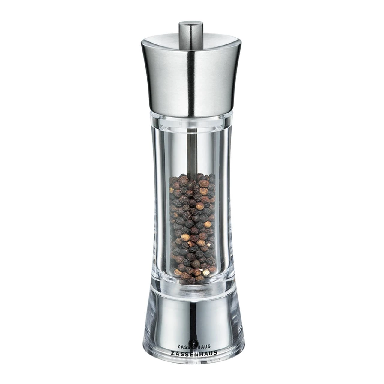 Die Pfeffer- und Salzmühle “AACHEN” von Zassenhaus bestechen durch zeitlose Eleganz und werten jeden Tisch auf. Sie liegen gut in der Hand und sind eine Bereicherung für jede Küche. Eine Mühle ist nur so gut, wie ihr Mahlwerk, denn das alleine entscheidet darüber, wie aromatisch und fein die Gewürze gemahlen werden. In dem ansprechenden Design steckt ein 6-fach einstellbares Mahlwerk aus Hochleistungs-Keramik. Der gewählte Mahlgrad – von ultrafein bis grob – ist auf einer Skala ablesbar, er bleibt beim Nachfüllen erhalten. Das verschleiß- und korrosionsfreie Mahlwerk ist geeignet für Pfeffer, Salz, Gewürze und getrocknete Kräuter.