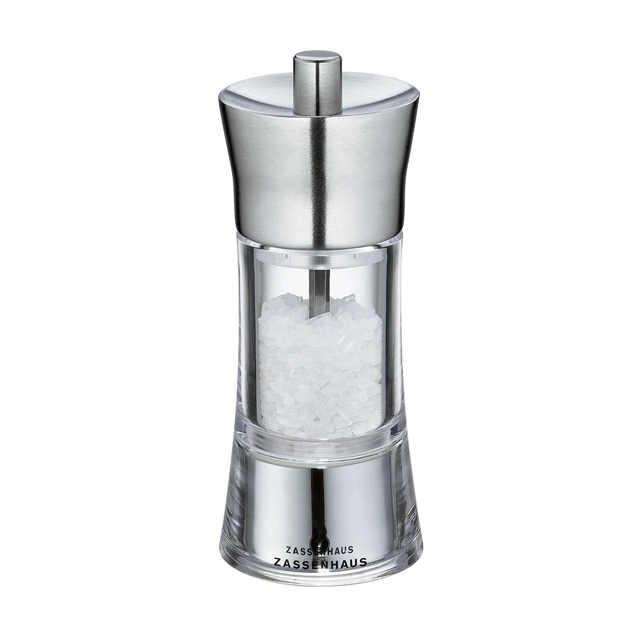 Seit 1867 stellt Zassenhaus als Traditionsmarke hochwertige Kaffee- und Gewürzmühlen her. Die Qualität ist gleichbleibend hoch, das Design geht mit der Zeit. Das trifft auch auf die Serie AACHEN zu. Die Mühlen sind aus hochwertigem Acryl gefertigt. Bei den Größen haben Sie die Wahl von klein und kompakt bis zum Hingucker auf dem gedeckten Tisch. In allen Modellen steckt das patentierte Mahlwerk aus Hochleistungs-Keramik. Es ist härter als Stahl, Feuchtigkeit und ätherische Öle können ihm nichts anhaben. Darauf gibt Zassenhaus 25 Jahre Garantie. Das Mahlwerk arbeitet in zwei Stufen und zerlegt Pfeffer, Salz, getrocknete Kräuter und Gewürze sorgsam und gründlich. Die sechs Mahlstufen von pulverfein (1) bis grob (6) stellen Sie am Mühlenboden ein. Sie sind auf einer Skala jederzeit ablesbar und verschieben sich beim Befüllen der Mühlen nicht. Pflegetipp: Mahlen Sie ab und zu etwas Reis durch, so ist das Mahlwerk vor Verkleben geschützt.
